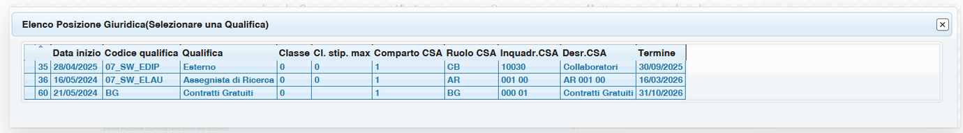 Se la missione è già stata salvata occorre modificare temporaneamente la data di fine di missione così che venga riproposta la schermata sopra e selezionare la voce corretta. Una volta selezionata la posizione giuridica corretta si potrà procedere con il normale inserimento.